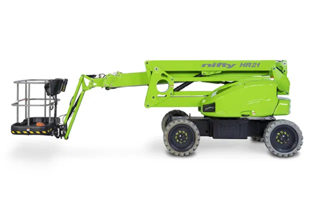 Daarnaast is de knikarmhoogwerker een elektrische kniktelescoophoogwerker die een hoogte van 20,8 meter kan halen. De reikwijdte is 12.5 meter en met een platformcapaciteit van 225 kilogram kunnen voldoende materieel naar boven verplaatst worden. De Niftylift kniktelescoophoogwerker voer je heel eenvoudig klusjes binnen in bijvoorbeeld een bedrijfshal of magazijn uit. De emissie van deze hoogwerker is 0% bij elektrisch gebruik en heeft verder een laag geluidsniveau.